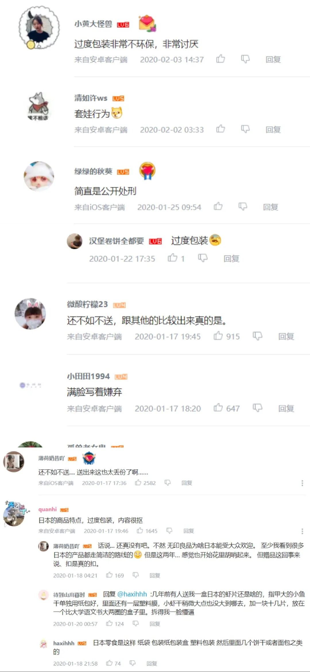 记者在翻阅一些品牌评论的时候也能发现,一些粉丝都曾吐槽过度包装,下面我们可以看一下来自粉丝的心声